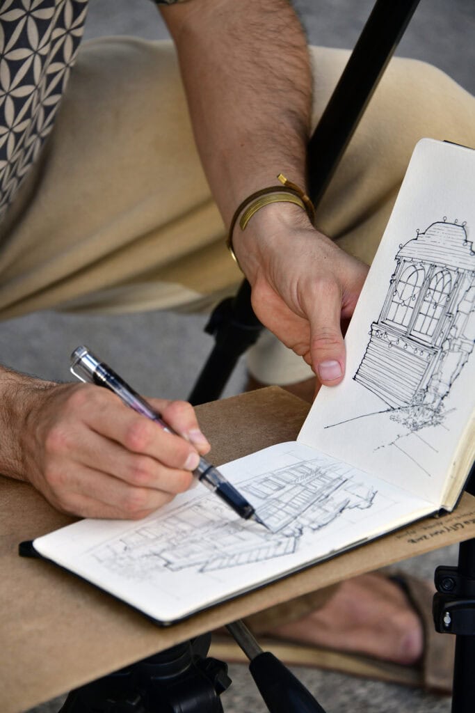 For under $75 you can be sketching in comfort either sitting or standing out on-location. This set-up has served me well and easily packs up for quick on the move guerrilla sketcher style.